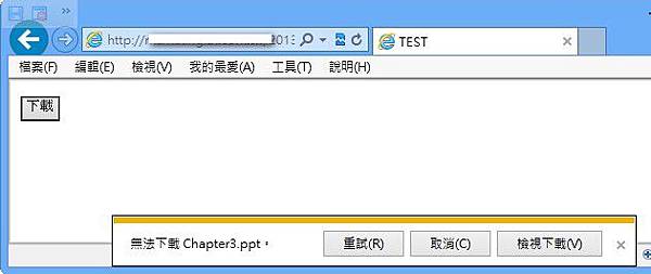 當使用IE9或IE10下載檔案時,IE的下載管理會先出現「無法下載....」,須按「重試」後才能順利儲存檔案。